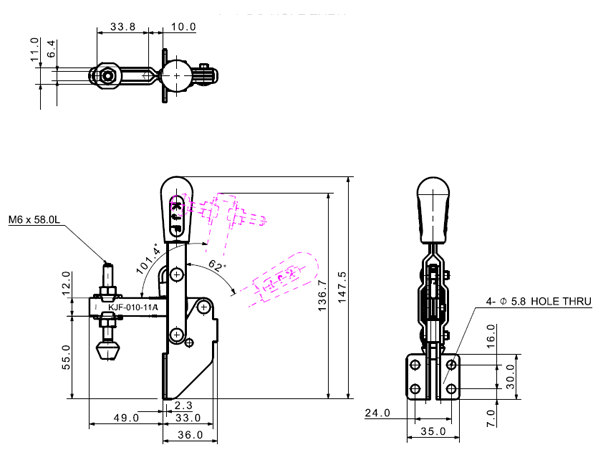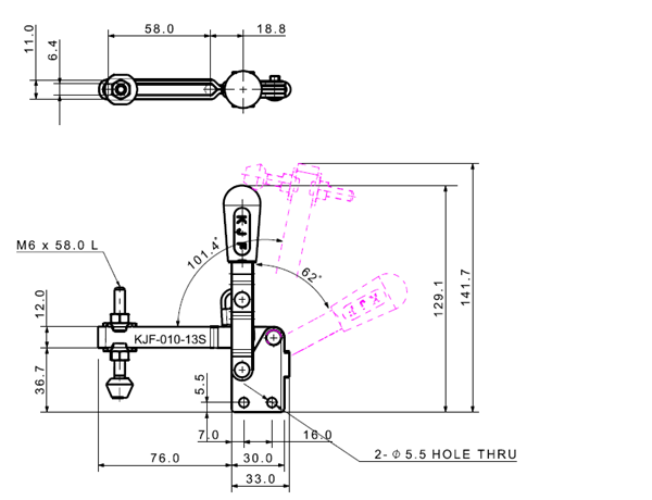 100 175 62˚ 101˚ M6 x 58.0L 58 U Middle Straight Low