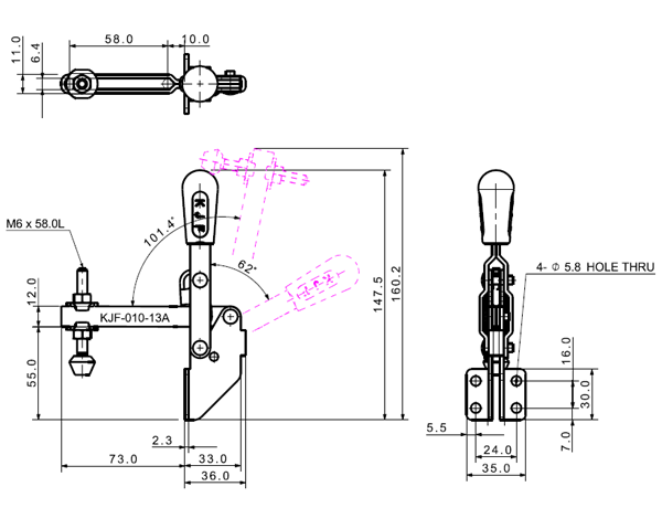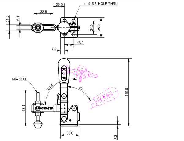 100 163 62˚ 101˚ M6 x 58.0L 34 U Short Straight Low