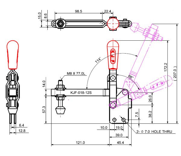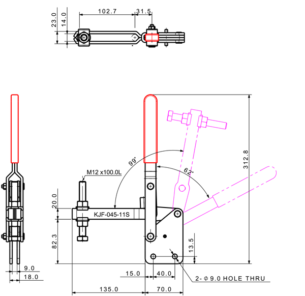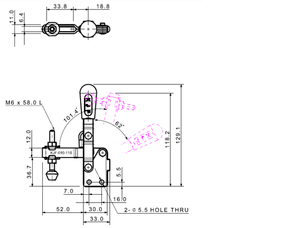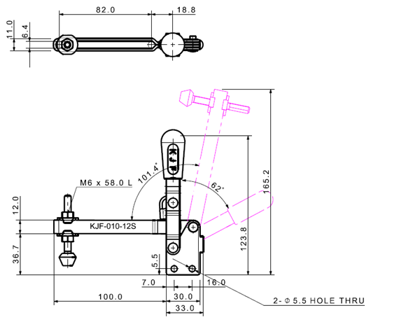 100 207 62˚ 101˚ M6 x 58.0L 82 U Long Angle Low