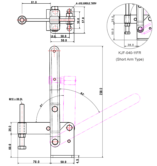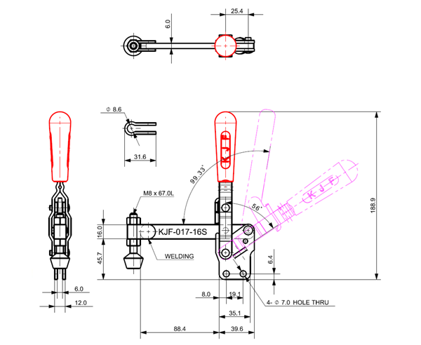 100 187 62˚ 101˚ M6 x 58.0L 34 U Short Angle Low