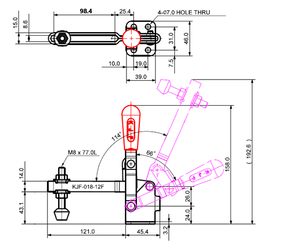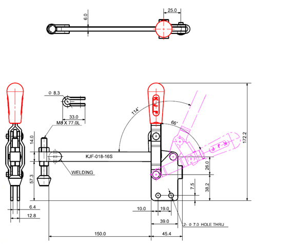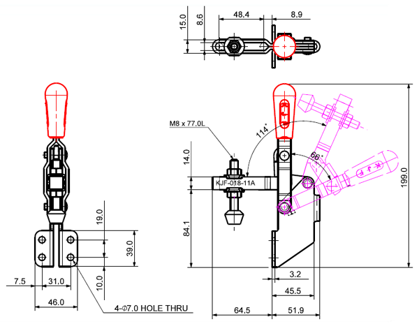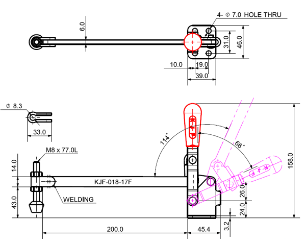 180 503 66˚ 114˚ M8 x 77.0L 98 U Middle Angle Low