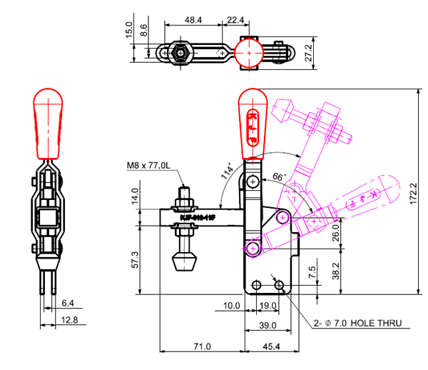 180 466 66˚ 114˚ M8 x 77.0L 48 U Short Angle Low