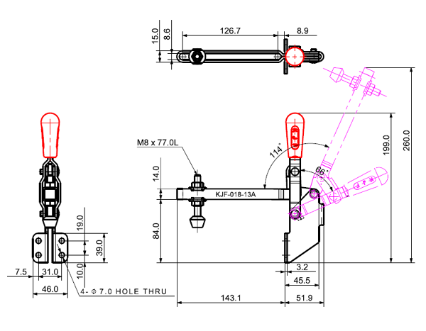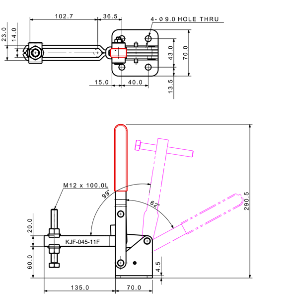 100 199 62˚ 101˚ M6 x 58.0L 58 U Middle Angle Low