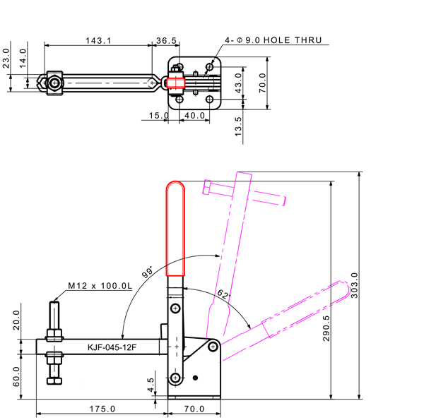 450 1440 62˚ 99˚ M12 x 100.0L 143 U Long Straight Low