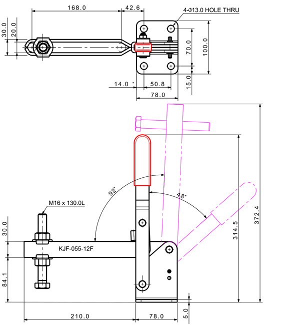 550 2560 48˚ 92˚ M16 x 130.0L 168 U Long Flange Low